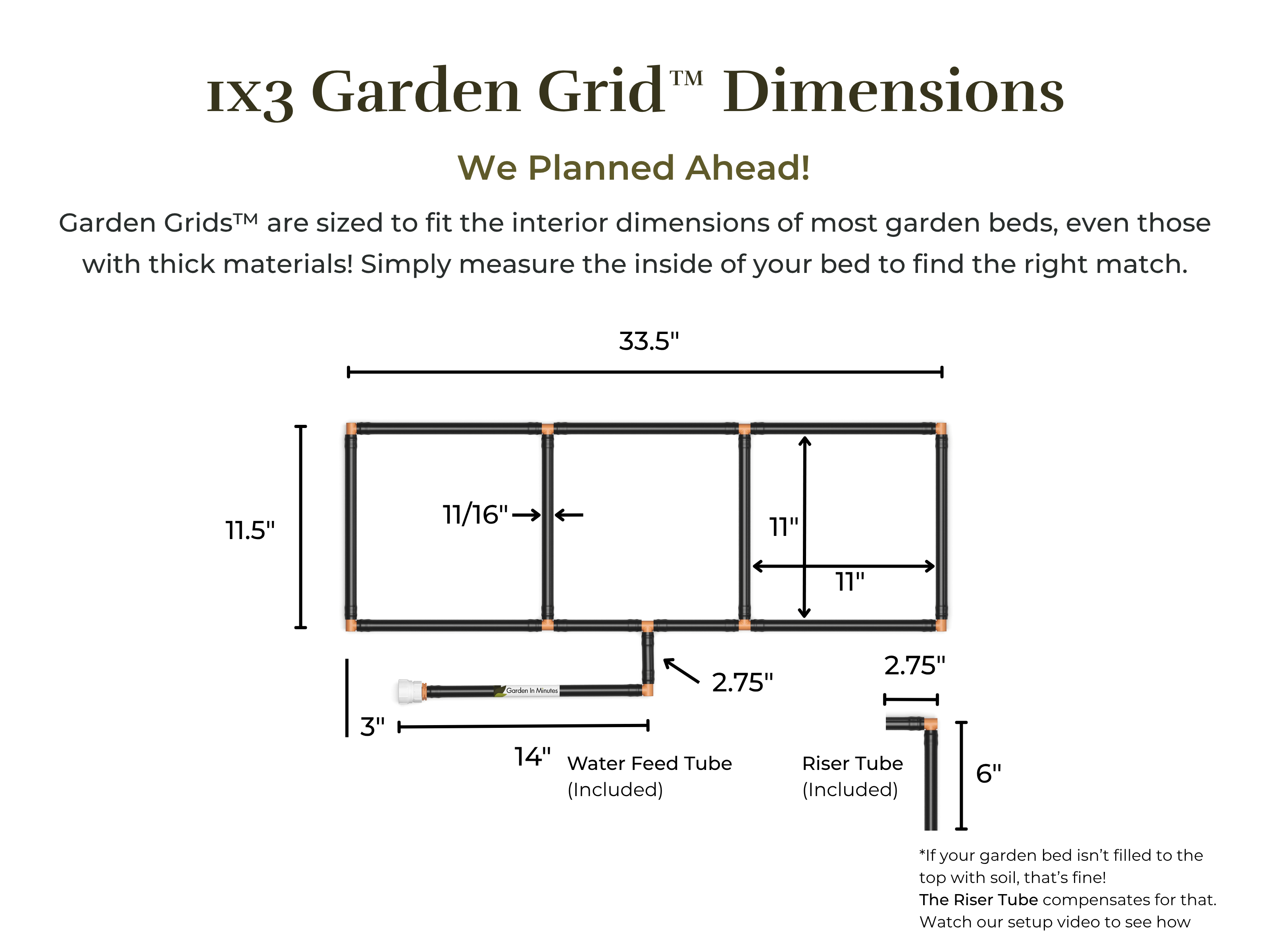 • Quick & Easy – Garden Grids™ ship in preassembled sections & they're ready to water in minutes. Connect to any standard garden hose, plant & grow!