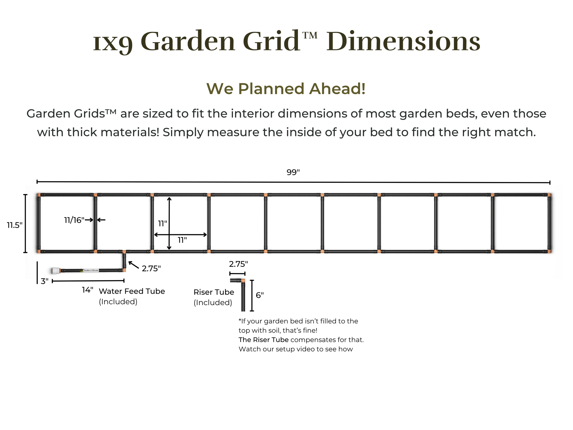 • Raised Bed Thickness Considered - We size all Garden Grids™ to fit the interior dimensions of most raised garden beds, accounting for garden bed material thickness.