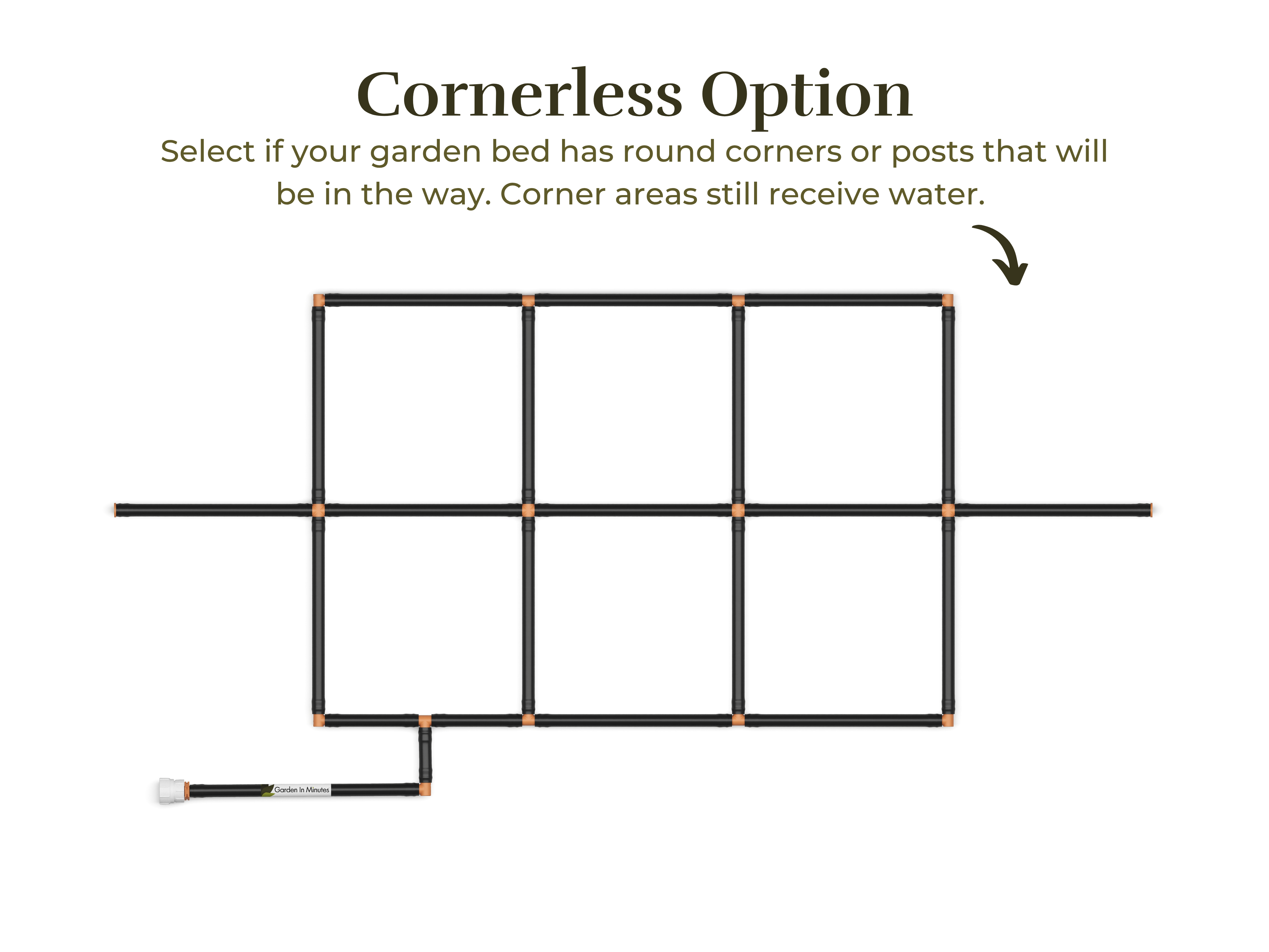 • Order the closest size to fit the interior of your garden, without going over. You can twist the perimeter tubes around so they spray water outward into your extra planting area. Below is a video showing how.