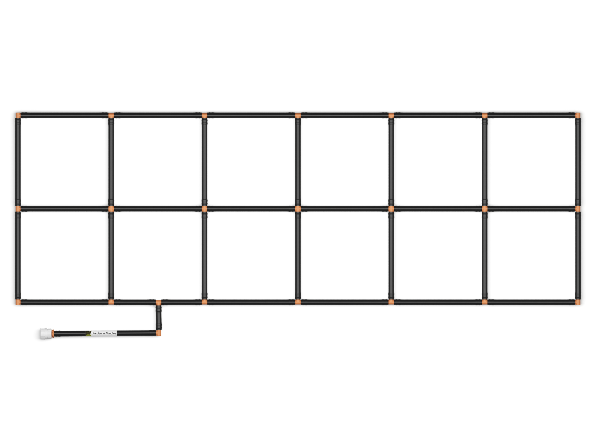 If your garden bed is larger than any single Garden Grid™ size, you can connect multiple Garden Grids™ together with our multi-Garden Grid™ connection manifold