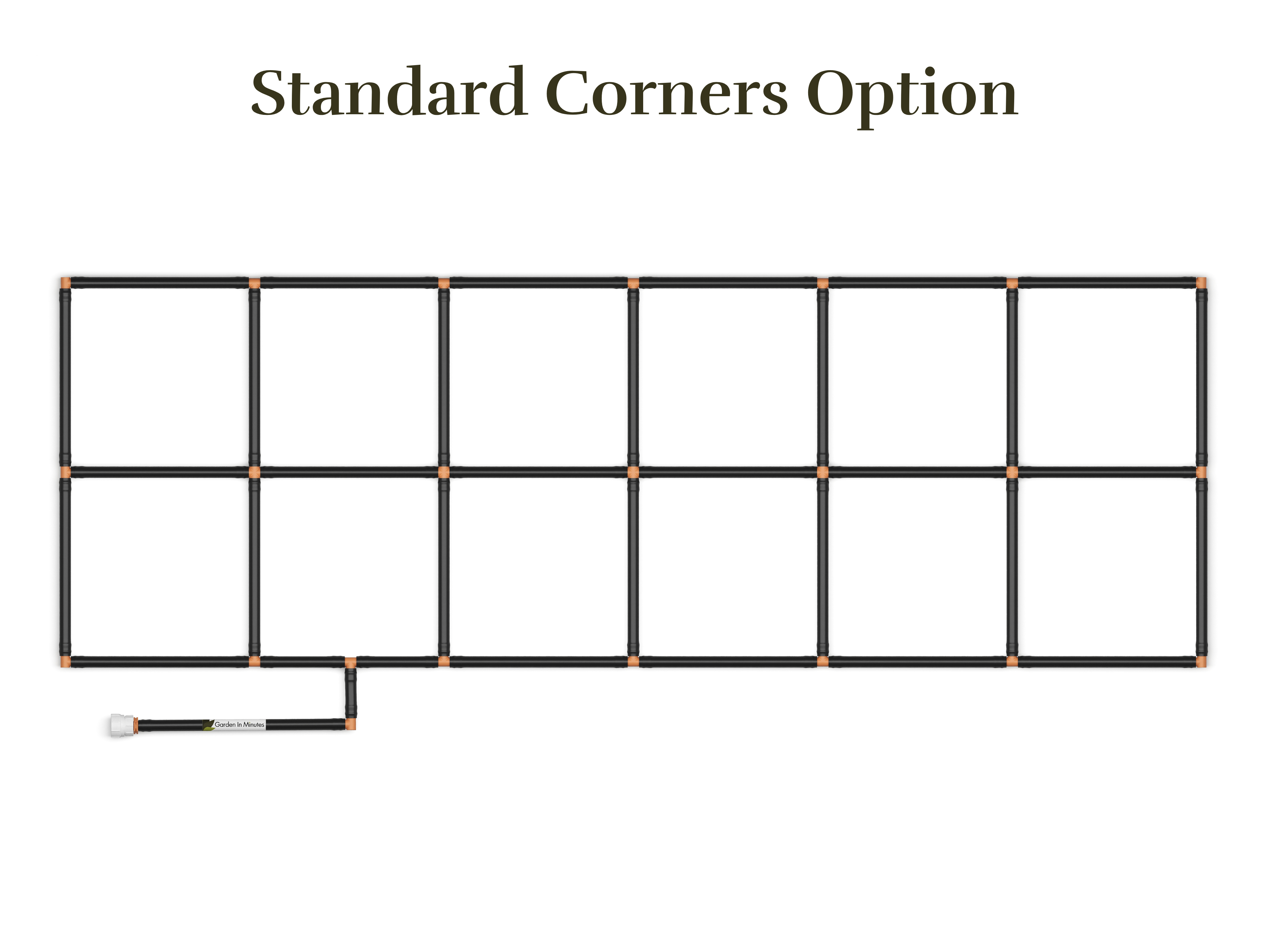 Our standard size fits most ground-level gardens and rectangular raised garden beds (like ours found here!) while our cornerless option is best for rounded-end or oval-shaped garden beds, or garden beds that have corner posts.