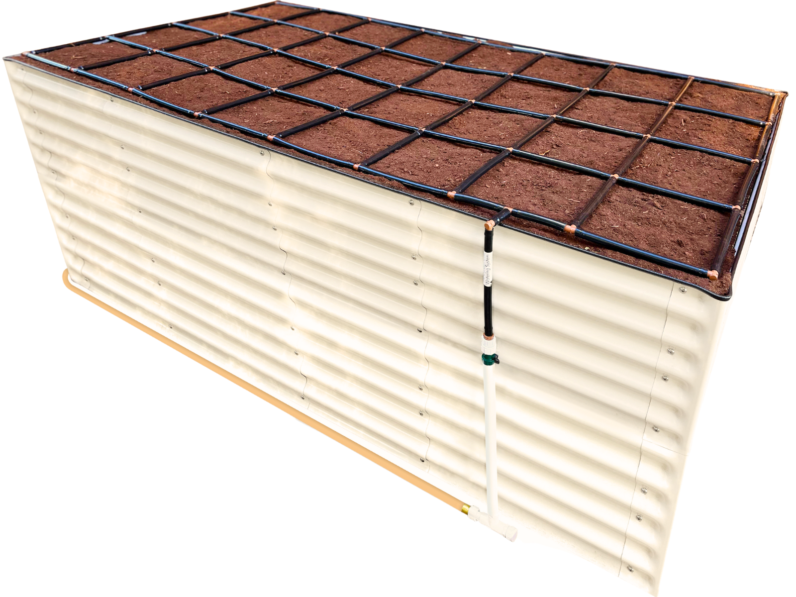 GIM™ Raised Garden Bundles are designed as a complete growing system. The square-ended 32" tall metal beds make it easier to follow Square Foot Gardening layouts and maximize usable growing space. Paired with the included Garden Grid™ and manifolds, water is delivered evenly across the entire bed from the surface down—making it suitable for seeds, seedlings, and mature plants, with flow that’s easy to see and adjust using simple built-in valves.