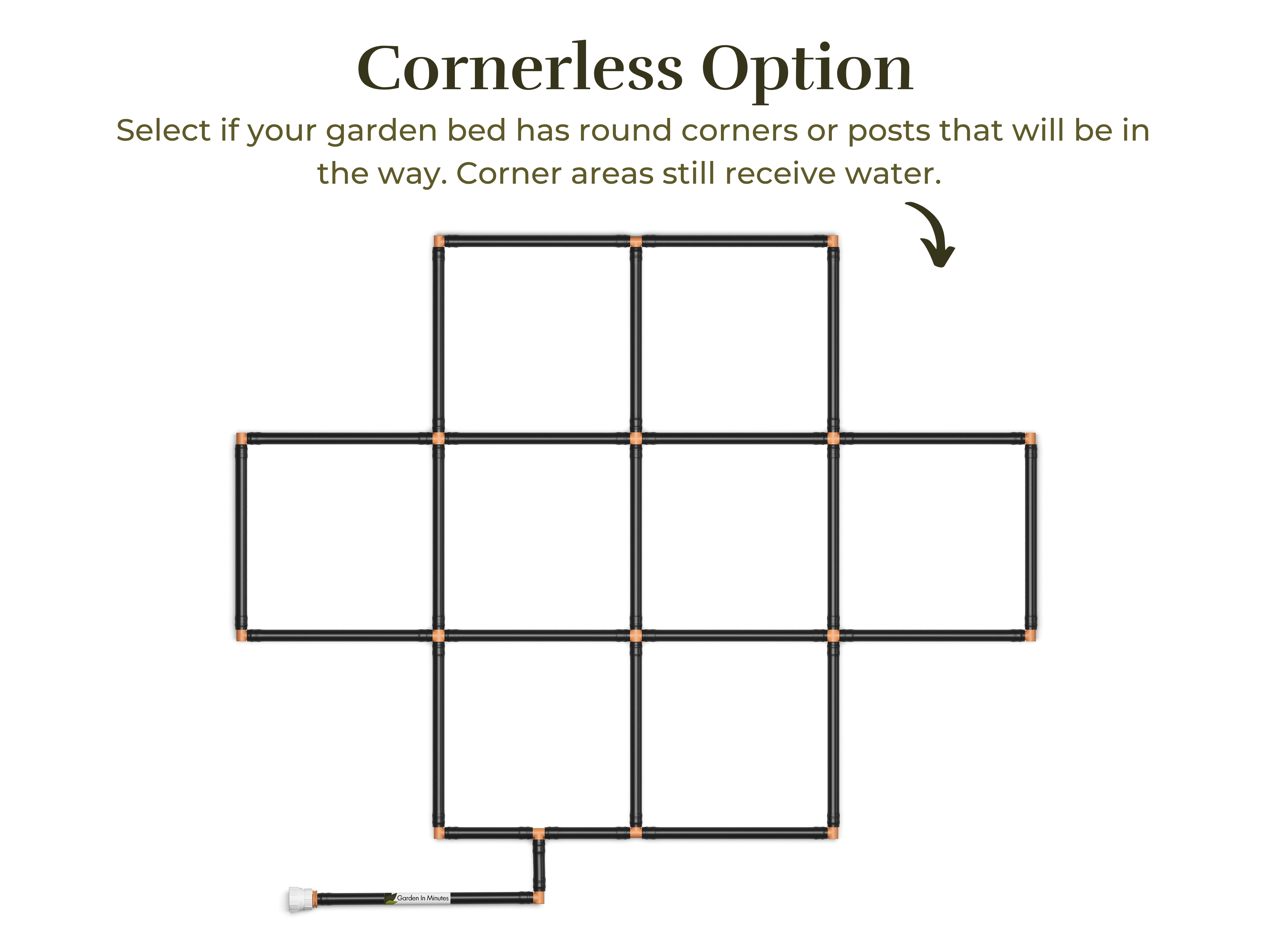 • Order the closest size to fit the interior of your garden, without going over. You can twist the perimeter tubes around so they spray water outward into your extra planting area. Below is a video showing how.