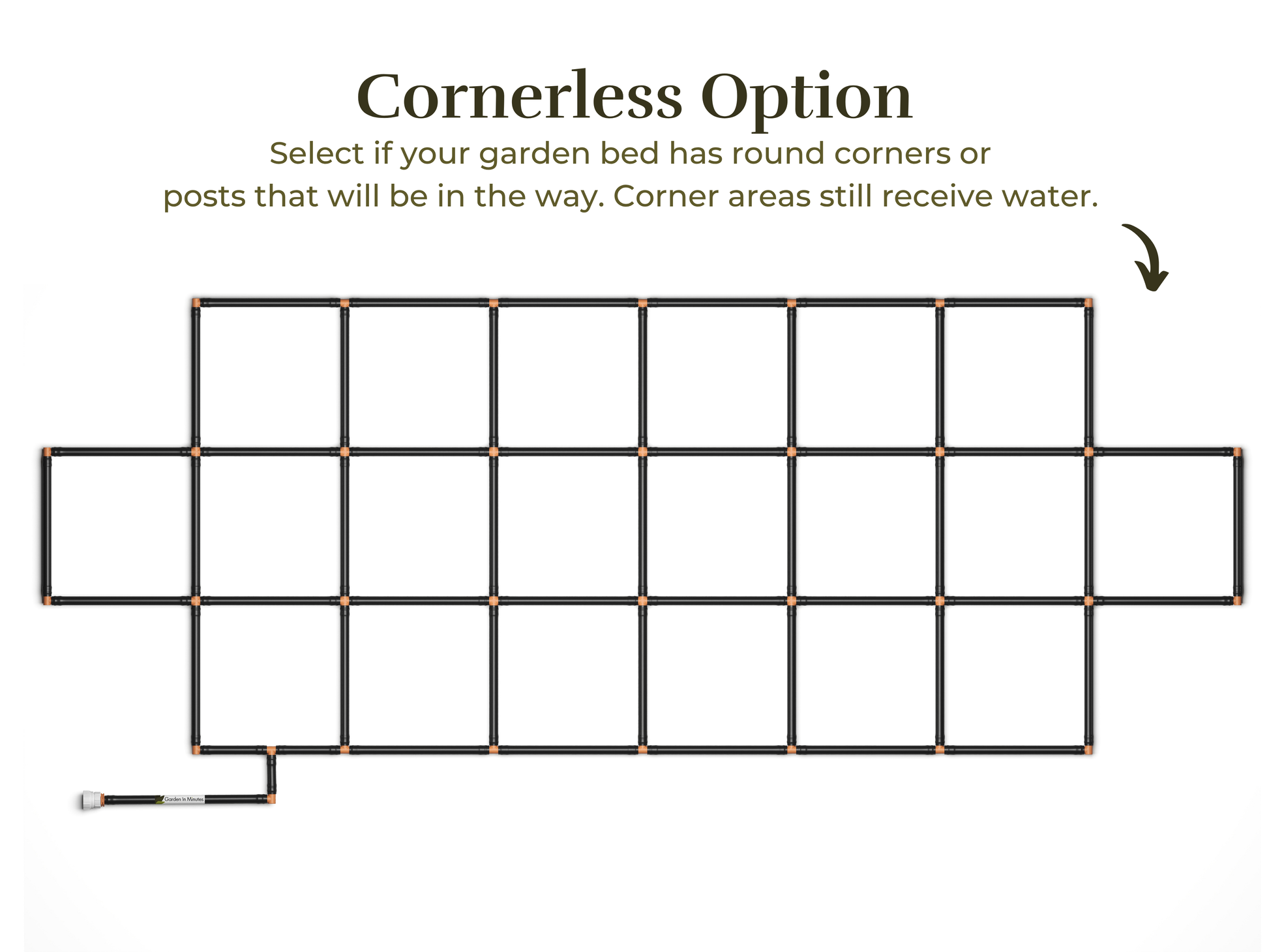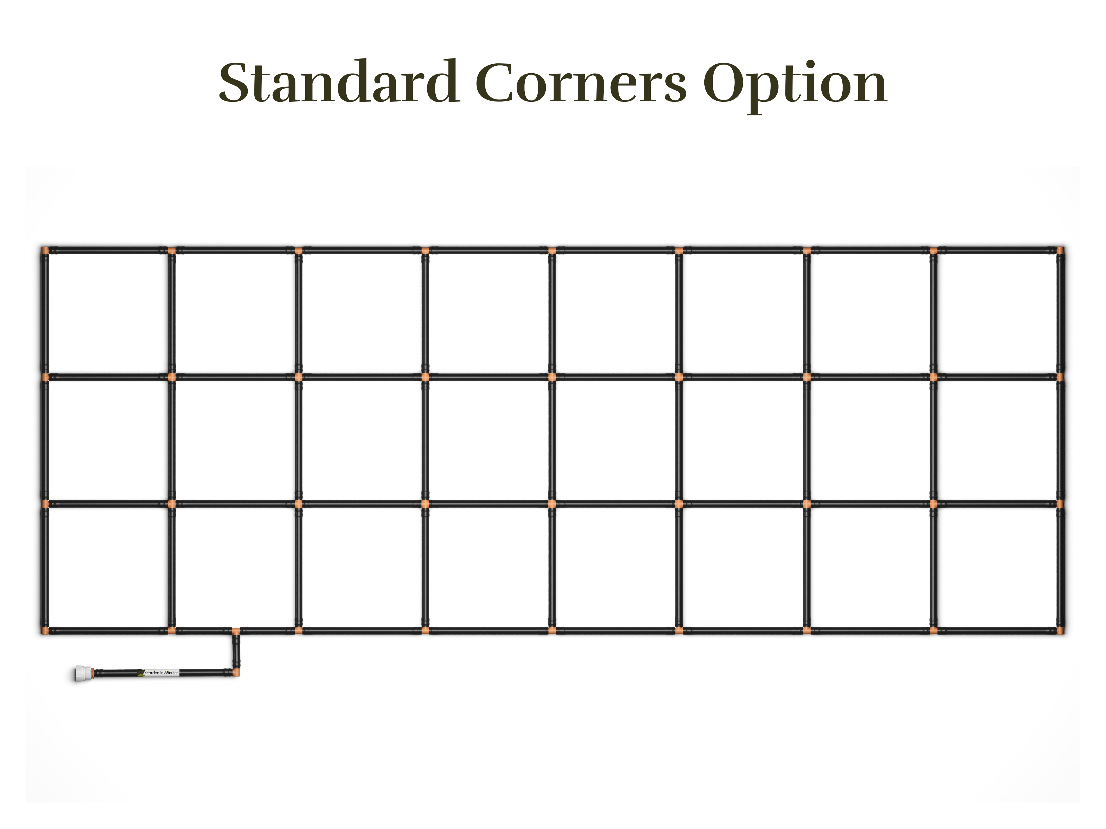 Our standard size fits most ground-level gardens and rectangular raised garden beds (like ours found here!) while our cornerless option is best for rounded-end or oval-shaped garden beds, or garden beds that have corner posts.