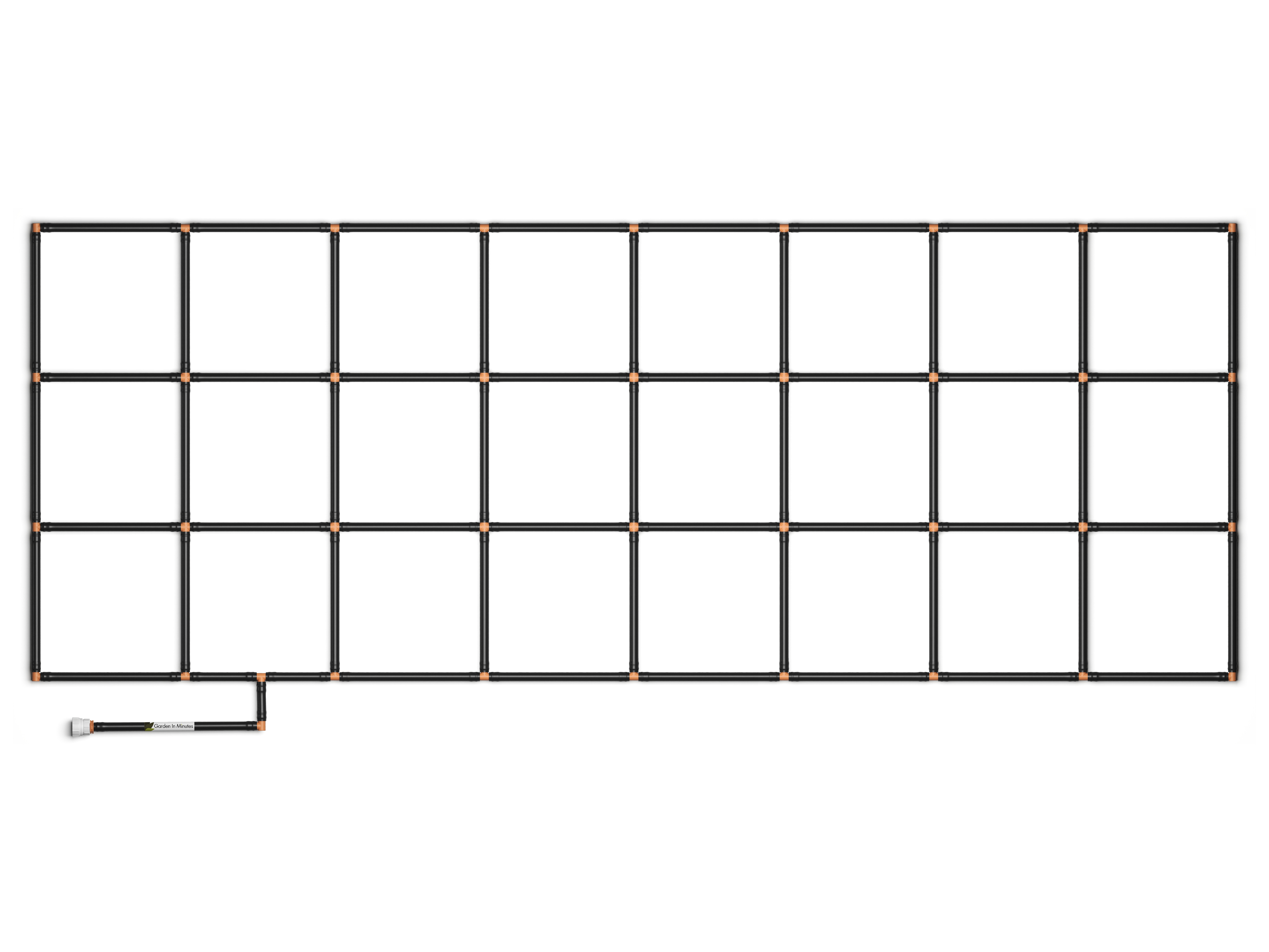 If your garden bed is larger than any single Garden Grid™ size, you can connect multiple Garden Grids™ together with our multi-Garden Grid™ connection manifold