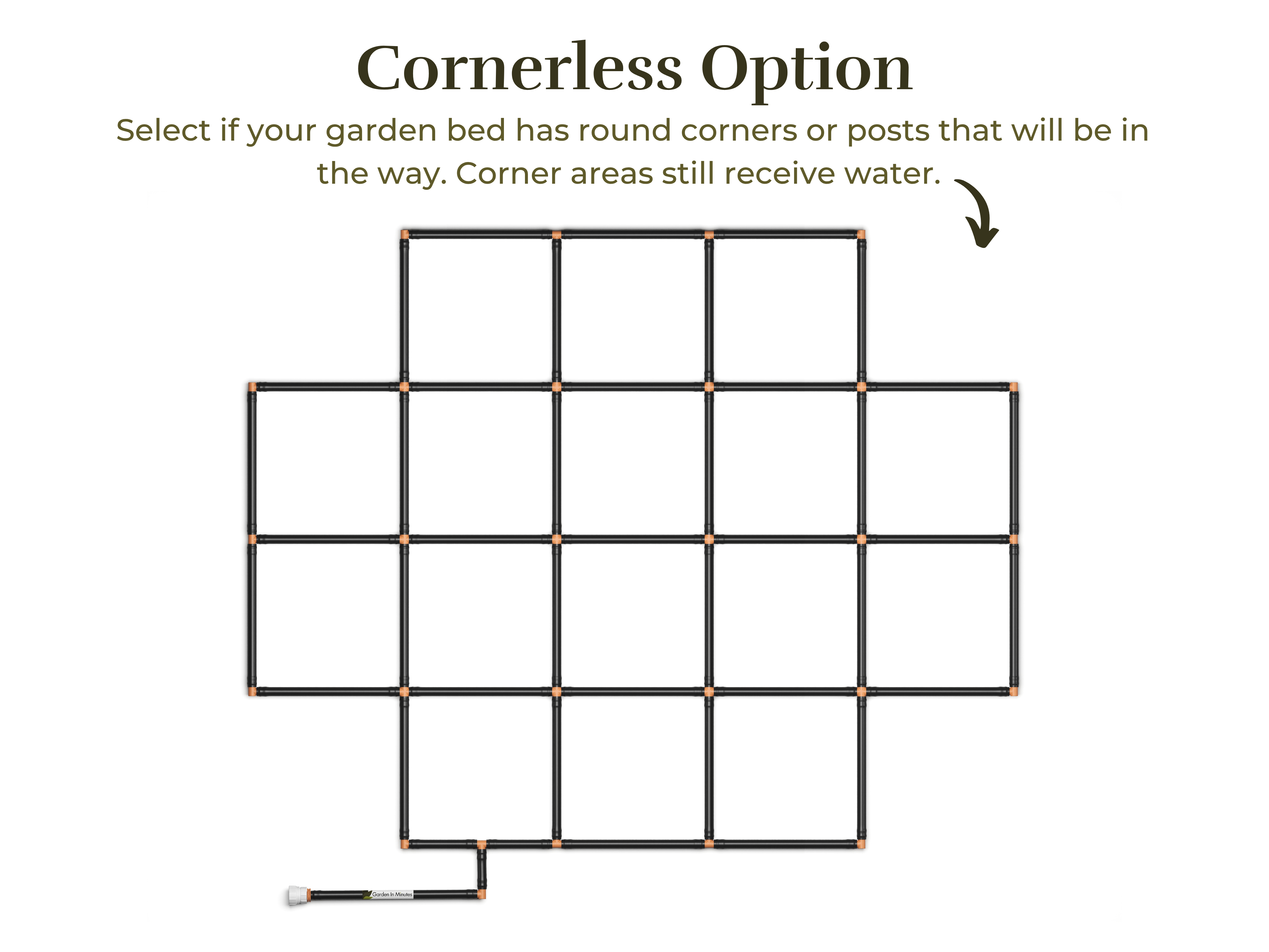 • Order the closest size to fit the interior of your garden, without going over. You can twist the perimeter tubes around so they spray water outward into your extra planting area. Below is a video showing how.