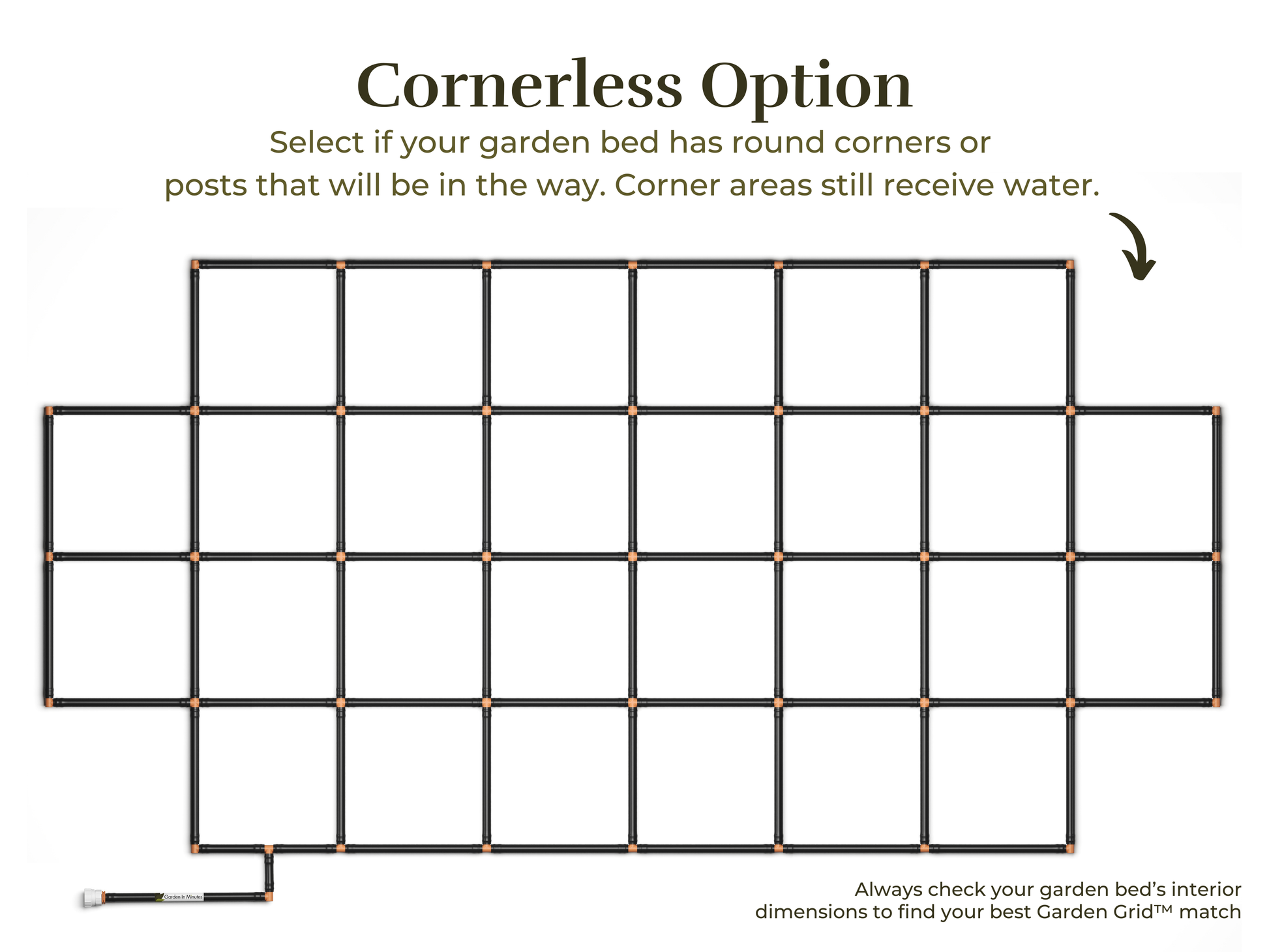 Important Tip: To ensure the best fit of a Garden Grid™ always measure the interior dimensions of your garden bed accounting for posts and and curved corners. Or simplify by using our All-In-One Raised Garden Bundles.