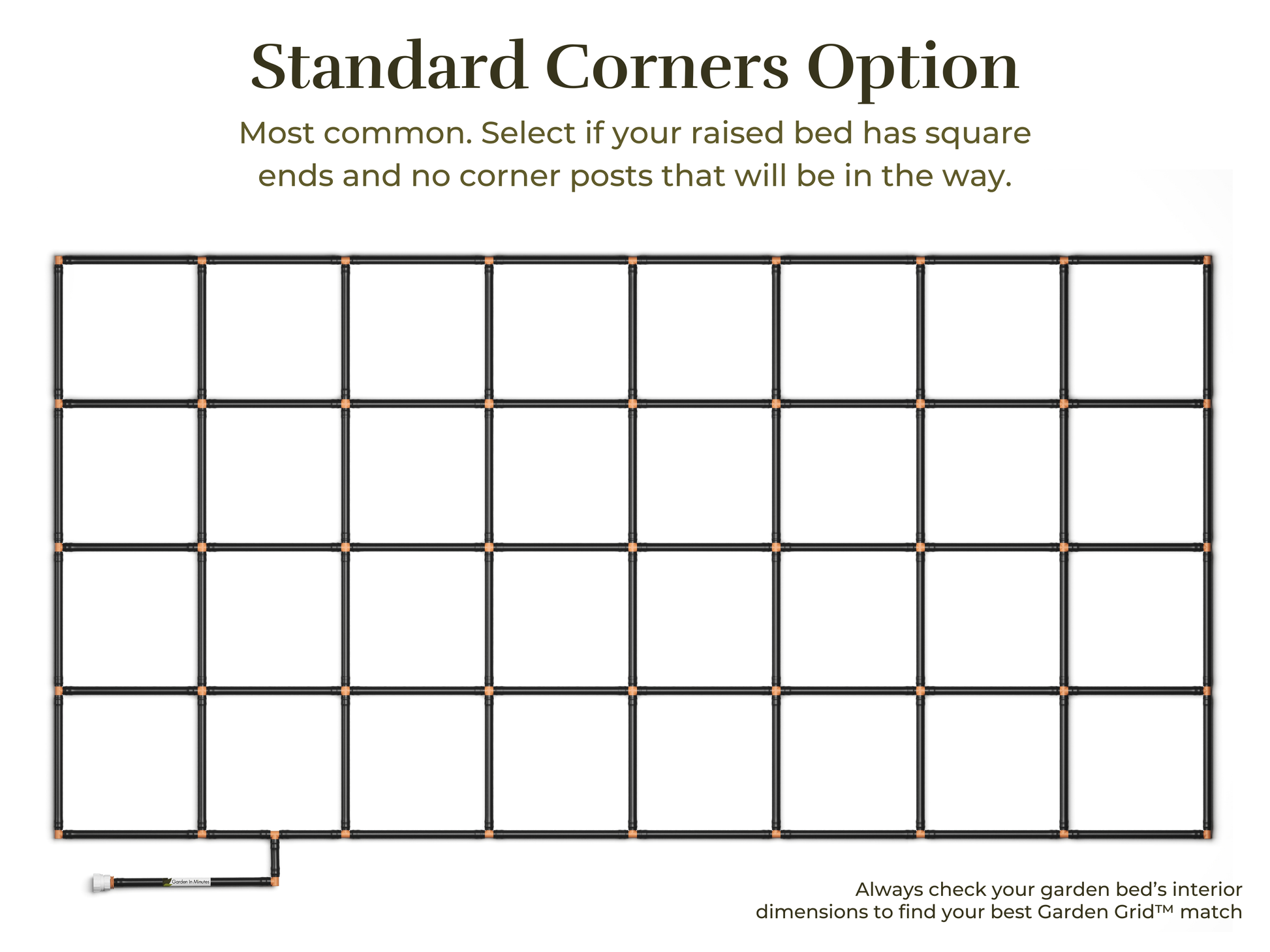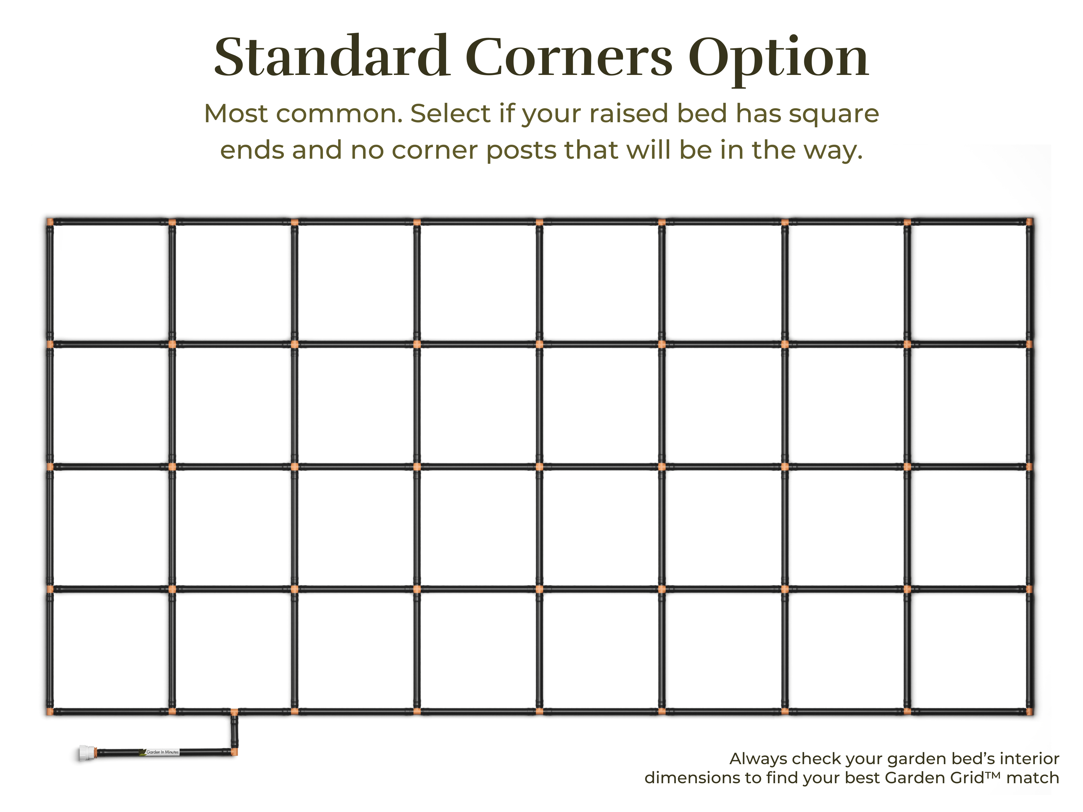 • Our standard size fits most ground-level gardens and rectangular raised garden beds (like ours found here!) while our cornerless option is best for rounded-end or oval-shaped garden beds, or garden beds that have corner posts.