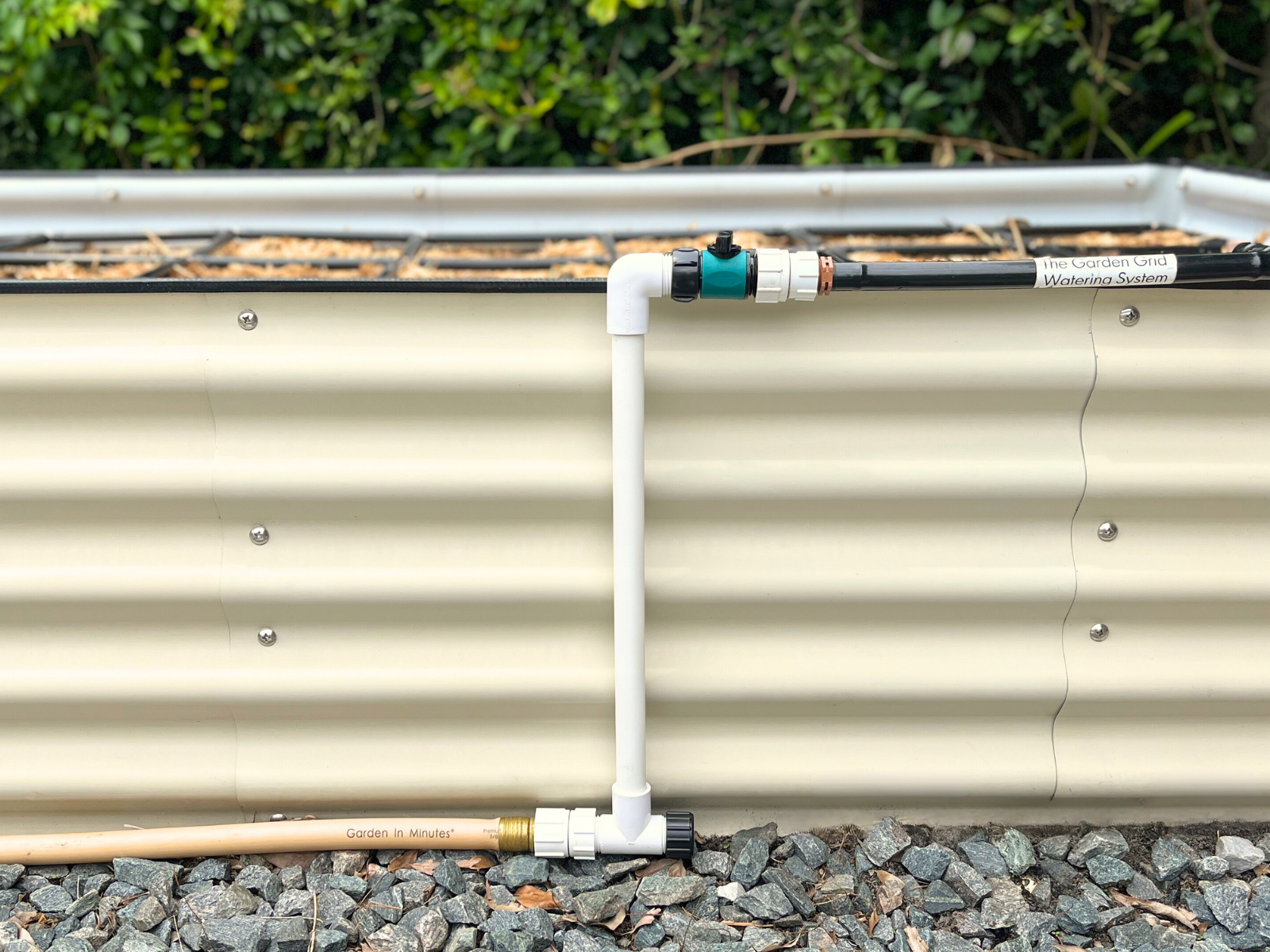 However, for raised beds taller than 15", we recommend using a manifold to help support the hose connection and reduce strain on the Garden Grid™ connector.