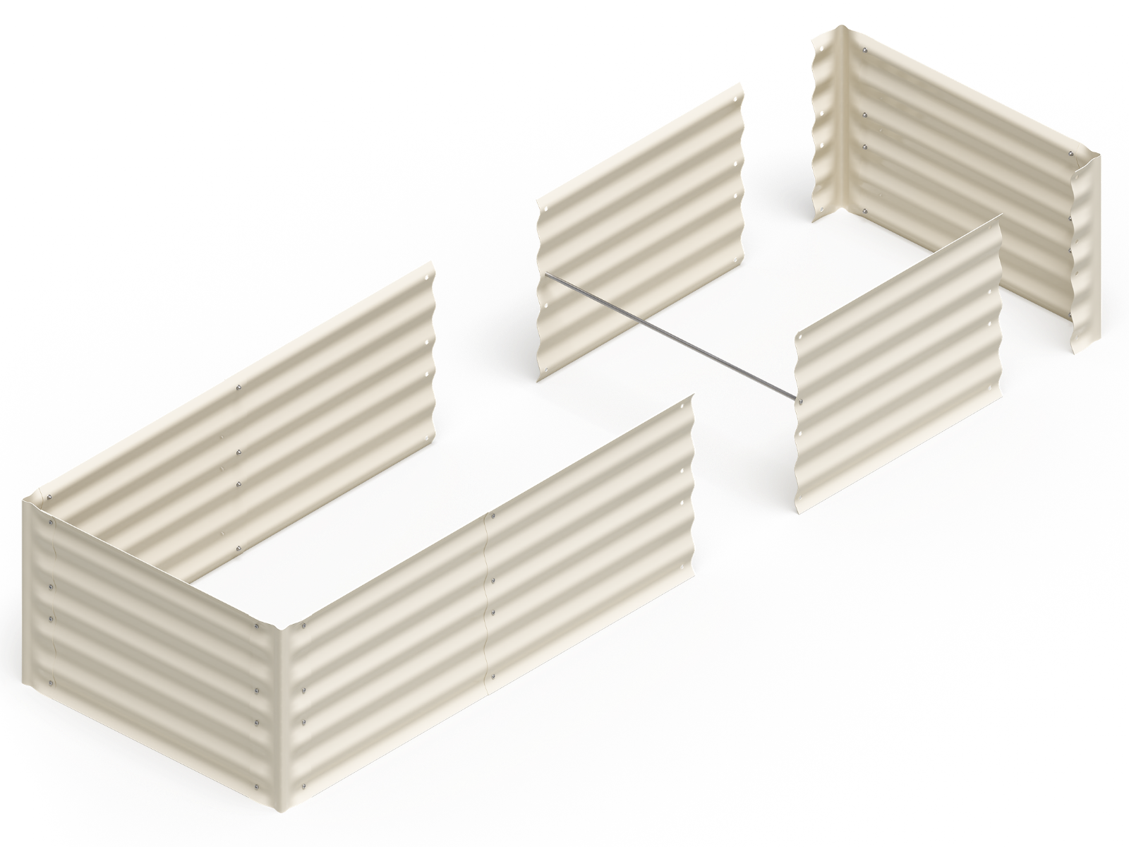 For example, you could extend a 4×8 bed into a 4×10 or a 2×10 bed into a 2×12 with a 2 ft expansion kit.