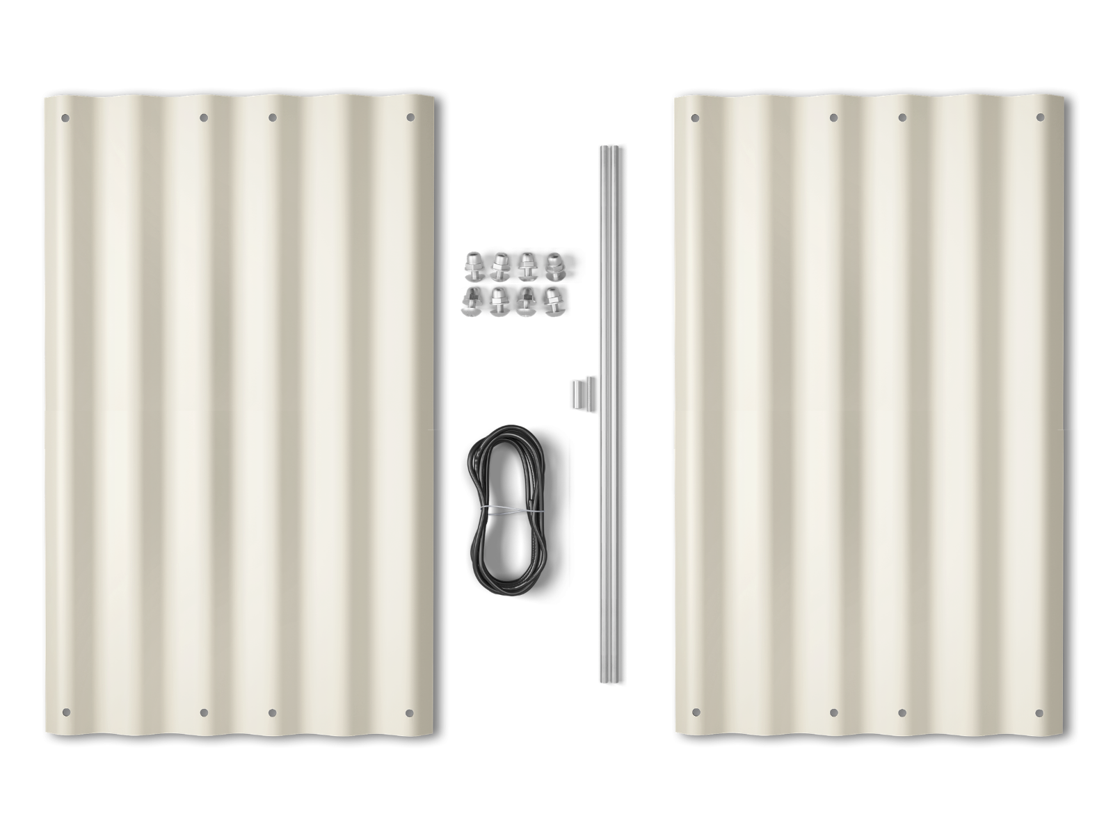 Each kit includes two expansion panels, a support rod set (two rods, spacer sleeve, and threaded connector), protective edging, and all required hardware.